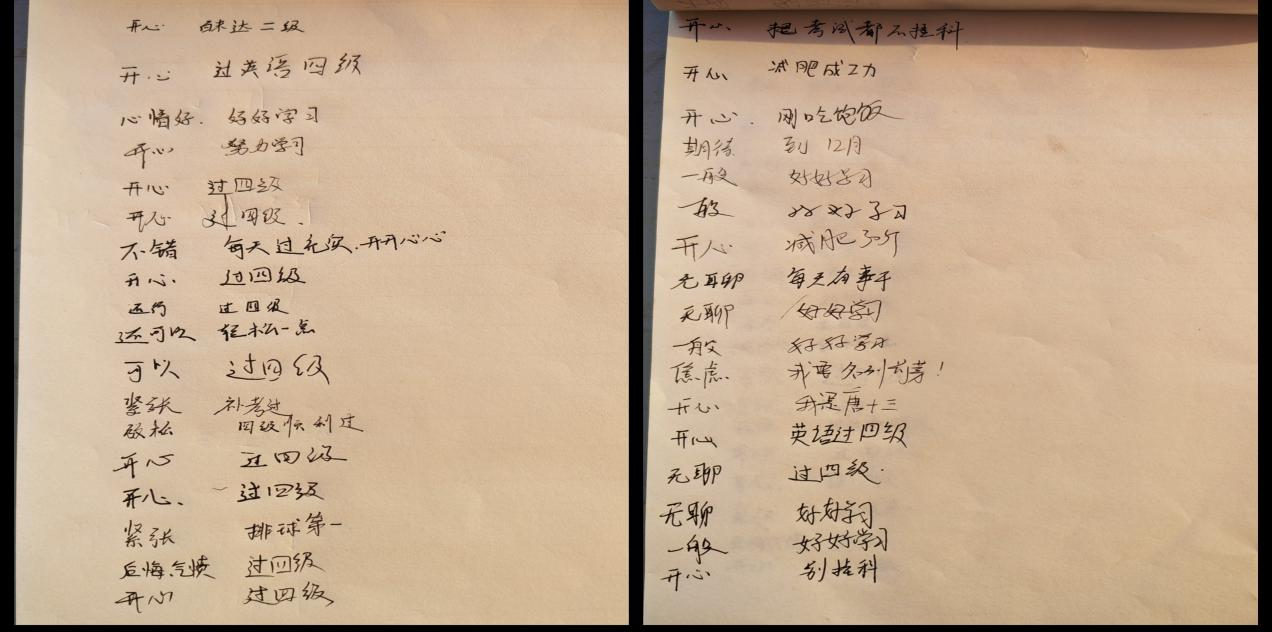活动现场,同学们踊跃参与,认真写下当下的心情与困惑,用文字倾诉心声、舒缓焦虑;同时,大家提笔写下新学期的目标与期许,定格成长心愿、凝聚奋进力量。心健联志愿者全程耐心引导,鼓励同学们有序参与、真诚分享,现场氛围轻松温馨、暖意融融,每一份情绪都得到尊重,每一个心愿都得到倾听,开学焦虑在彼此的陪伴与鼓励中慢慢消散,同伴支持与自我接纳的力量悄然传递。