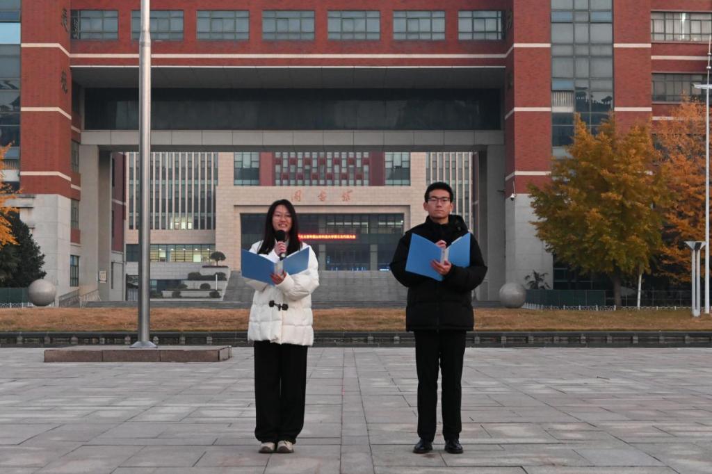 11月24日清晨,能源学院在泰山广场举行“共绘‘十五五’蓝图,青年担当展风采”主题升旗仪式。学院学工办主任、团委书记周尚涛,全体辅导员老师及全院学生参加本次升旗仪式。