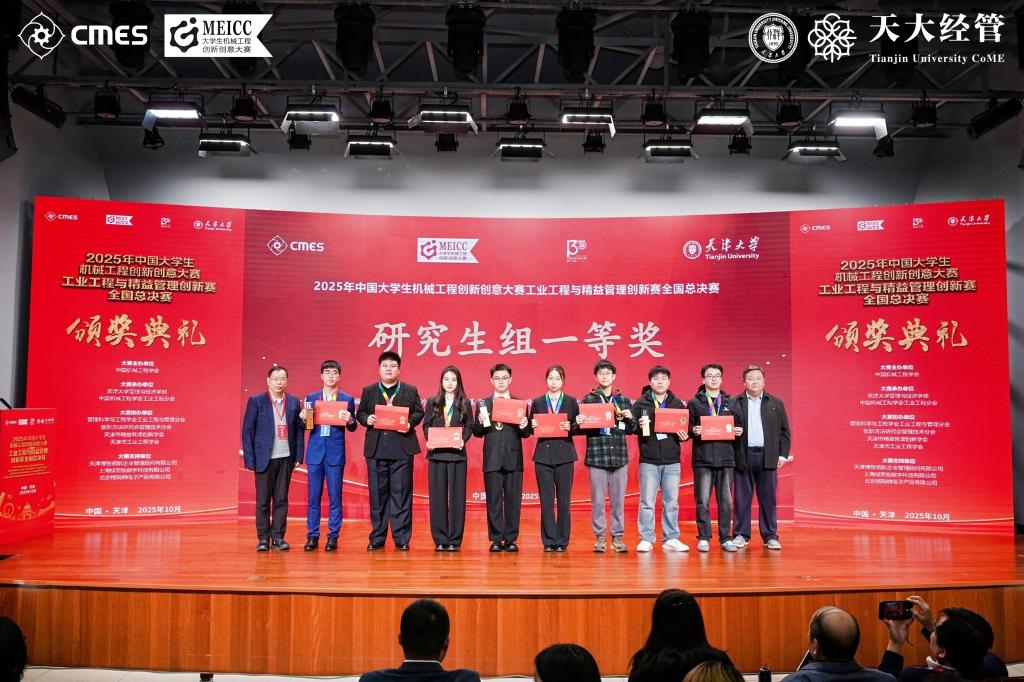 据悉,大赛由中国机械工程学会主办,天津大学管理与经济学部、中国机械工程学会工业工程分会承办,是全国工业工程领域规格最高、影响最广的权威赛事之一。本届大赛以“精益智能,协同创新”为主题,汇聚了来自全国26个省、自治区、直辖市的122所高校、769支参赛队伍。经过激烈角逐,共评选出全国一等奖19项,全国二等奖33项,全国三等奖125项。