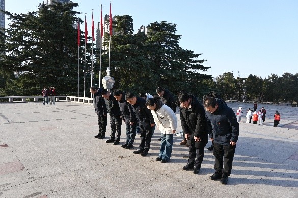 时值第12个南京大屠杀死难者国家公祭日,党委理论学习中心组(扩大)一行在郑州烈士陵园举行了庄严的缅怀仪式。在巍峨的革命先烈纪念碑前,党员代表敬献花篮,全体人员肃立垂首,为在民族独立、人民解放和国家富强道路上英勇献身的革命先烈默哀,表达深切追思与崇高敬意。学院党委书记卞西春仔细整理花篮挽联,并带领全体人员缓缓绕行,瞻仰革命先烈纪念碑。