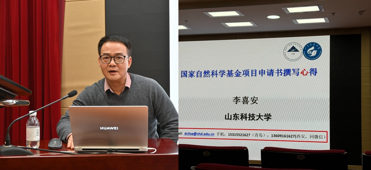 报告会上,李喜安教授结合自身多年的国家自然科学基金申报与评审经验,围绕基金选题凝练、研究目标与科学问题的提出、研究内容与技术路线设计、创新点挖掘以及申请书整体逻辑结构等方面进行了系统讲解。李教授结合个人具体案例,深入剖析了优秀基金申请书的共性特征,重点强调了科学问题导向、研究方案可行性以及创新性表达在申请书撰写中的关键作用,并就常见问题和易忽视细节提出了针对性建议。