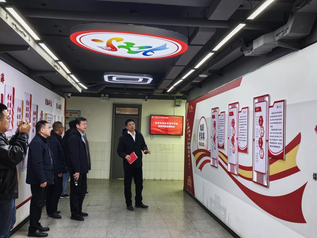周尚涛现场介绍了“嘉源驿站”的建设背景、体系架构、文化内涵、建设情况和阵地功能。泰安校区学团工作部领导一行依次参观了“家文化”中心展厅、“红墨交融”主题文化长廊、辅导员工作室、青听约吧、思享汇、抬光小屋、能创空间等驿站阵地,并就驿站综合管理模式建设中的党建引领、队伍入驻、学生参与、文化建设、数字赋能和条件保障等方面展开了深入交流。