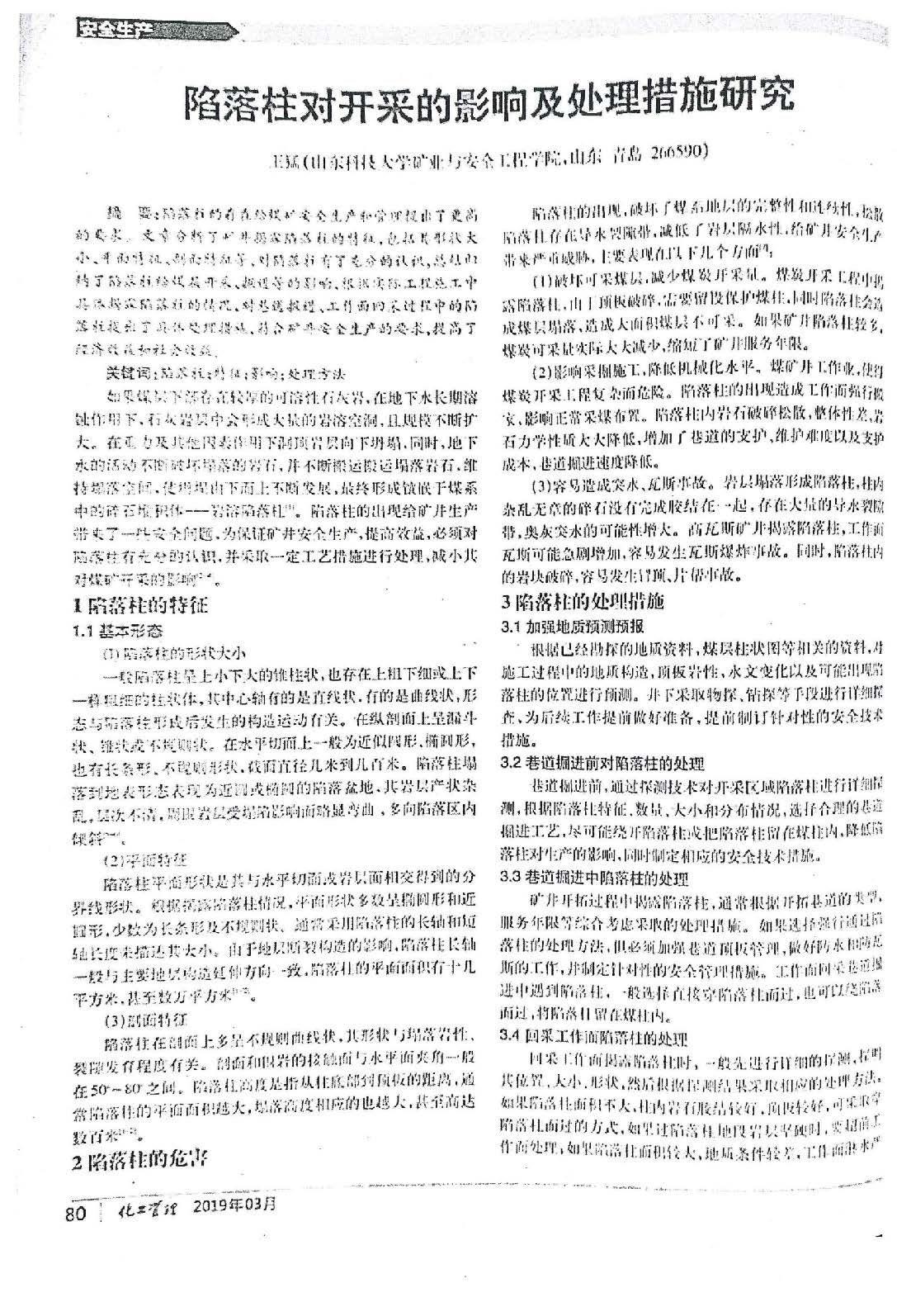 陷落柱对开采的影响及处理措施研究