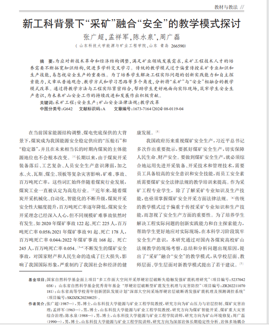 新工科背景下“采矿”融合“安全”的教学模式探讨