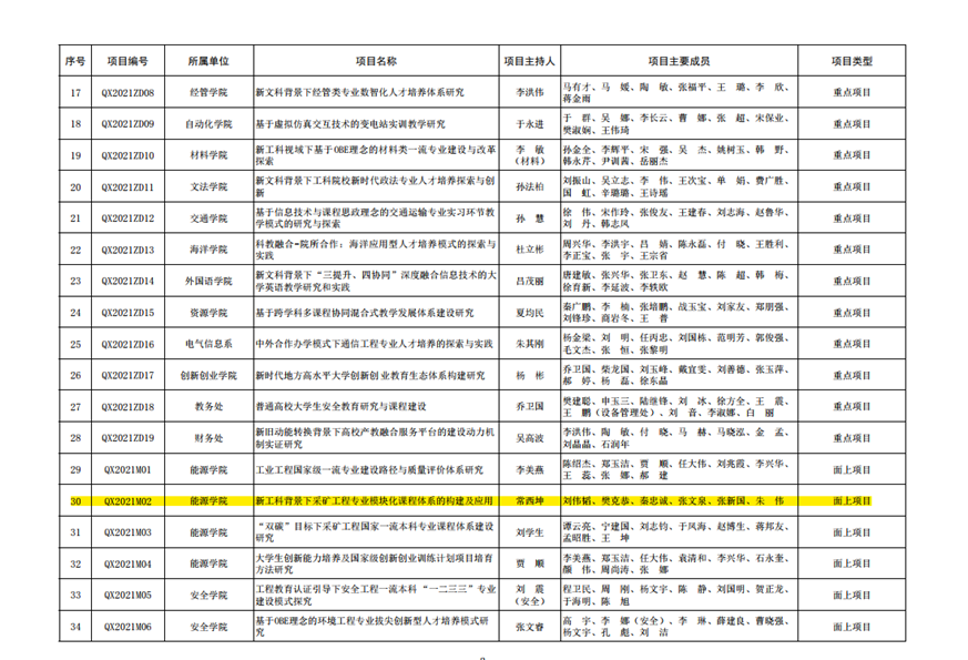 山东科技大学群星计划面上项目《新工科背景下采矿工程专业模块化课程体系的构建及应用》